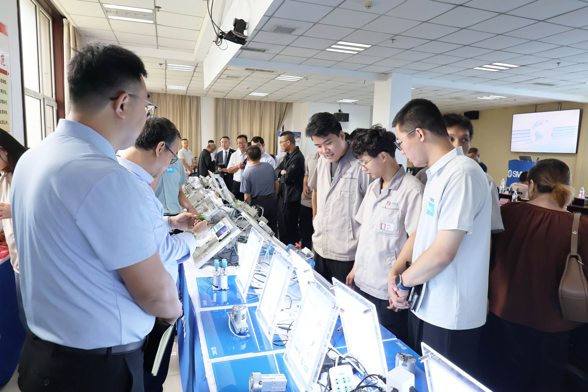在實物展示與互動交流環(huán)節(jié),參會者圍繞展品結(jié)構(gòu)與SMC技術(shù)專家展開熱烈討論,針對實際生產(chǎn)中遇到的技術(shù)難題、應(yīng)用痛點進(jìn)行了深入探討,此外,參會人員還與聯(lián)盟同行、高校學(xué)者就行業(yè)技術(shù)發(fā)展趨勢、人才培養(yǎng)體系建設(shè)、項目合作等進(jìn)行良好溝通,為晉中紡機(jī)液壓特色專業(yè)鎮(zhèn)構(gòu)建技術(shù)生態(tài)注入了新動能。交流會雖已落幕,技術(shù)熱度卻持續(xù)升溫。不少未能參會的企業(yè)技術(shù)人員、生產(chǎn)一線職工專程前來觀摩展品,交流經(jīng)驗。大家一致認(rèn)為,本次交流會不僅拓寬了對氣動與液壓系統(tǒng)融合應(yīng)用的認(rèn)知邊界,也更清晰揭示當(dāng)前企業(yè)自身在產(chǎn)品能效、智能化程度及系統(tǒng)解決方案等方面與國際先進(jìn)水平之間的差距,同時也看到了追趕和超越的機(jī)遇。